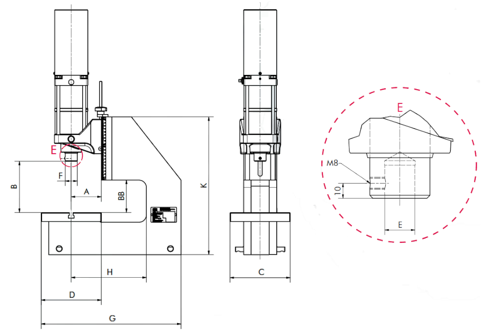 Серия XL-DA — это пневматические прессы прямого действия с увеличенным вылетом 250 или 300 мм. Предназначены для обработки крупногабаритных деталей: листового металла, печатных плат и других объемных изделий . Сохраняют все преимущества прессов прямого действия: постоянное усилие на всем ходу, высокая точность регулировки, модульность и практически не требующее обслуживания исполнение