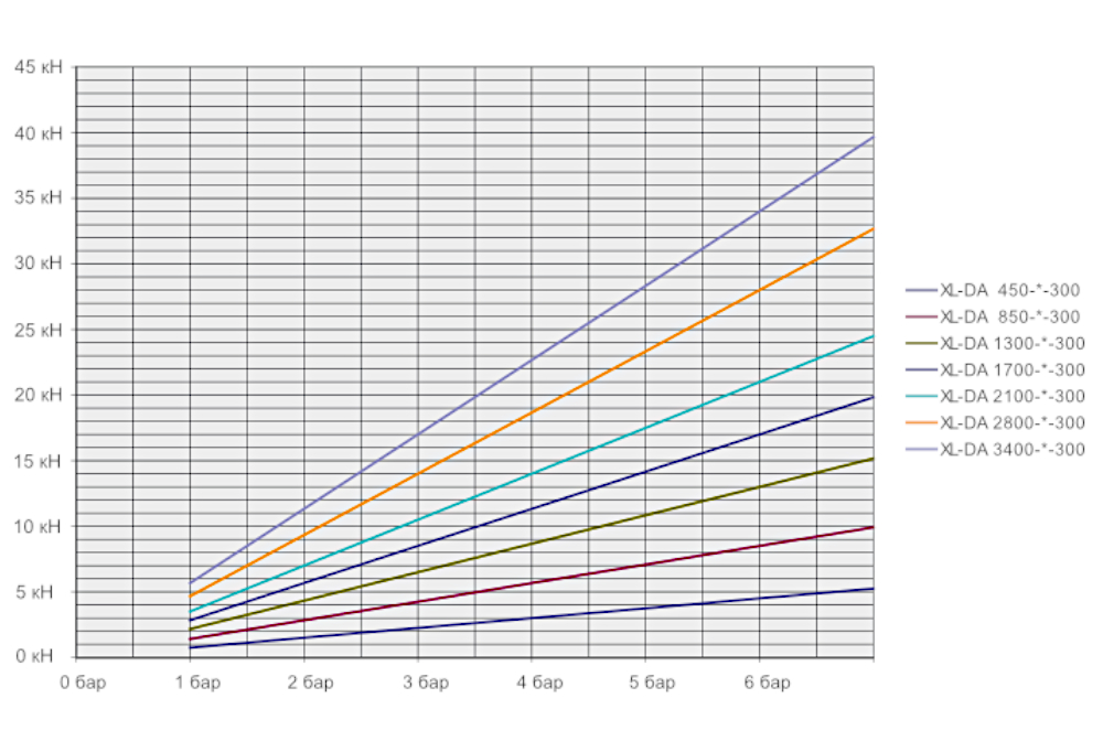 | Тип | XL-DA 450-*-250 | XL-DA 850-*-250 | XL-DA 1300-*-250 | XL-DA 1700-*-250 | XL-DA 450-*-300 | |||